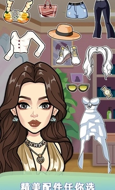 轻点选项卡,即可切换服装并佩戴配件。快来记录并分享你精心设计的时尚穿搭吧!