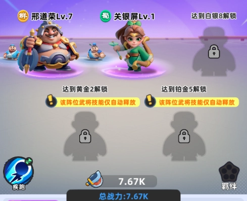 鉴于前期可供使用的武将数量有限,所以重点应放在凑齐能形成羁绊的武将组合上。