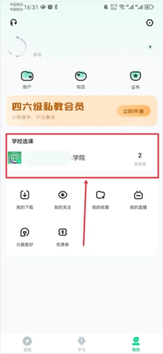 1、在本人的界面里,点击“学校”选项,即可进入选课界面。