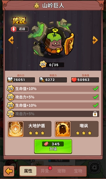 属性:该英雄为土属性,升级此英雄能够提高所有土属性伤害以及生命值。
