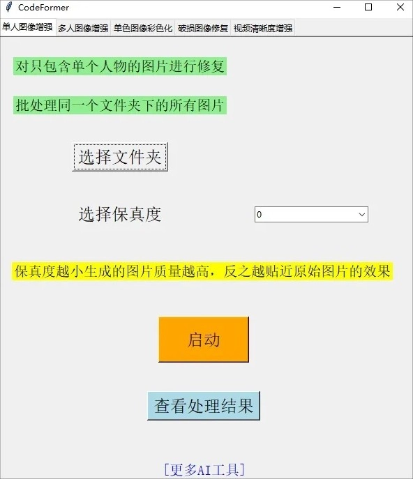 CodeFormer堪称一款极为实用的图片处理软件。该软件运用了先进技术,只需提供模糊或带有马赛克的图像,就能生成清晰的原始图像。不仅如此,它还具备丰富多样的功能,像老照片修复、马赛克修复、黑白照片彩色化以及视频增强效果等等。用户可借助各类工具进行图片处理,从而创作出理想的图片。欢迎有需求的小伙伴们前来体验使用!
