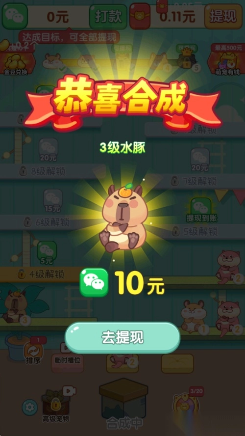 2. 游戏操作简便,单手就能揪起宠物进行合成,上手轻松,奖励轻松拿。