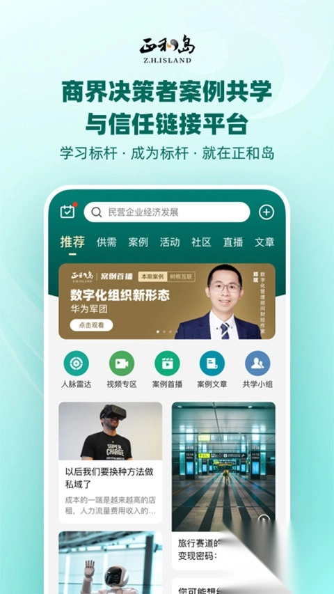 【首页】中国商界高含金量的内容平台,在首页可查阅岛上企业家的优质观点,与专家、大咖近距离互动和碰撞;