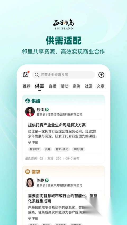 供给需求一键发布,资源线上精准匹配;政企资源合作对接,发现企业合作商机
