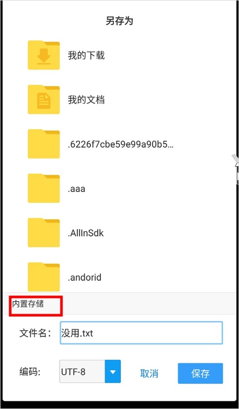 4、轻点文件名上方的“存储”选项,在弹出的界面中挑选我们想要保存文件的文件夹,接着点击右下角的“保存”按钮,如此就能把文件成功保存至手机当中。