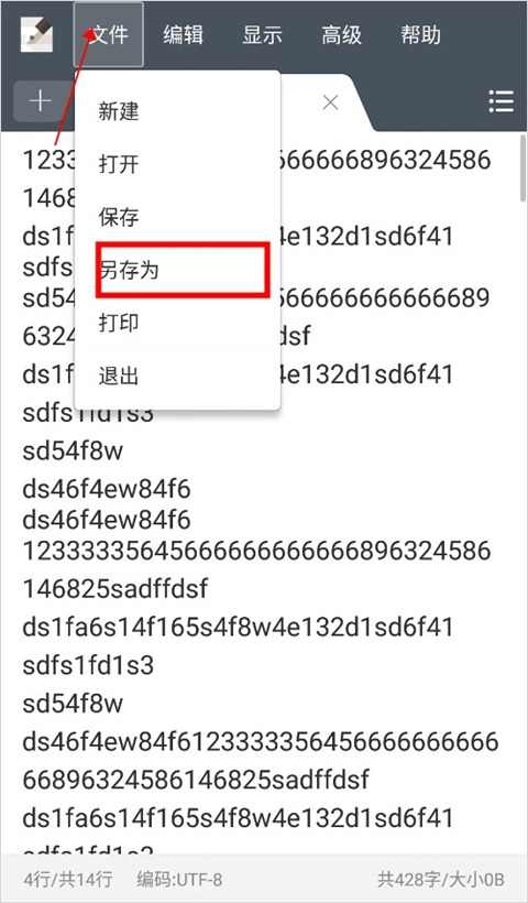 2、完成我们要转换文字的输入后,点击上方工具栏中的“文件”选项,接着点击“另存为”。