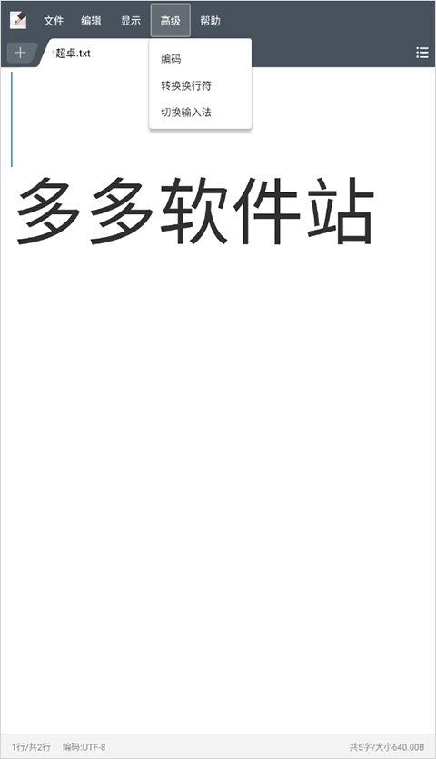 4、高级板块所涉及的操作包括对文本进行编码、转换换行符以及切换输入法。
