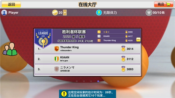 4、实时联网对战体系,能让你与世界各地的玩家同场竞技,尽情领略热血乒乓球对决带来的激情。