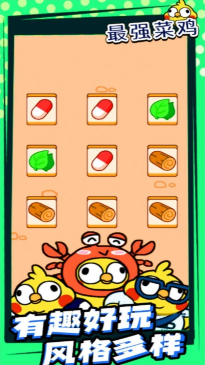 最强菜鸡游戏安装包对应的这款游戏,是一款极为休闲的消除类游戏。它融入了经典的三消元素,不过难度相较于普通三消游戏更高。游戏内设有各类挑战任务,等待着你来突破,成功突破后就能解锁更多趣味十足的关卡。感兴趣的朋友不妨来体验一番。