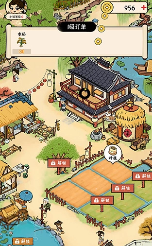 2、于田园之中,能够模拟经营各类卖菜摊位或店铺,通过经营摊位的升级获取铜钱。