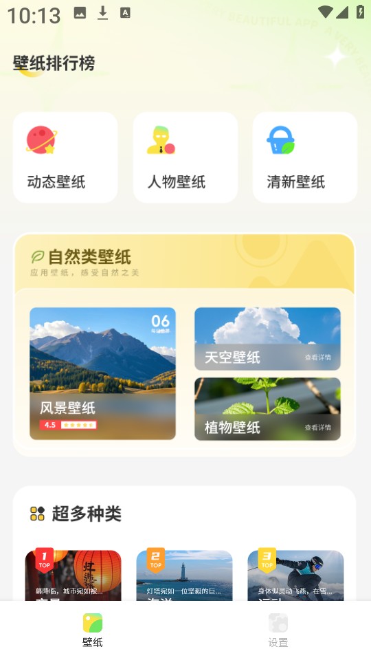 2、如图所示,首页涵盖了风格各异的壁纸图片。