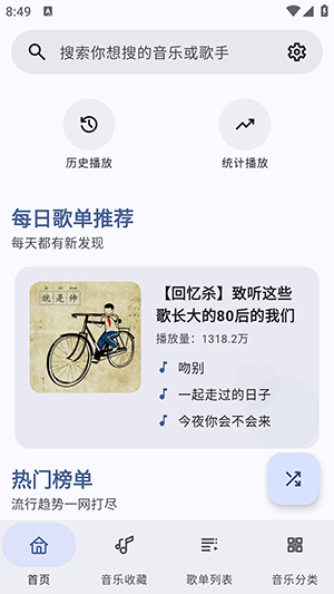 1. 便捷开启音乐体验,通过自建歌单播放歌曲,尽情领略音乐魅力