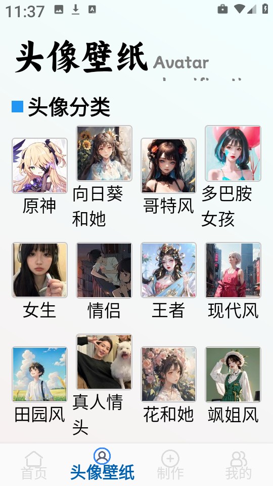 2、每天都会向用户推荐一些时尚头像,其中包含大量动漫及热门头像。
