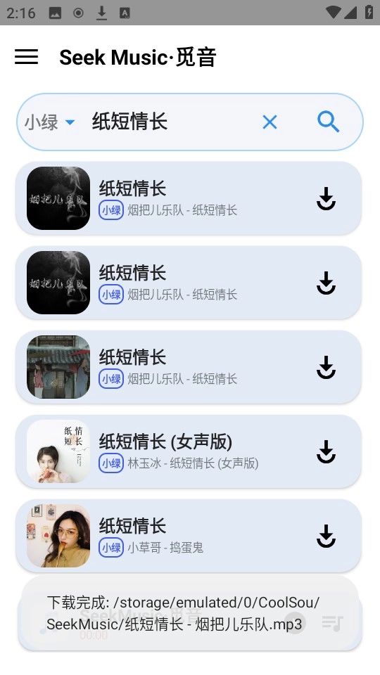 1、找到你喜欢的歌曲之后,这里以“纸短情长”为例。