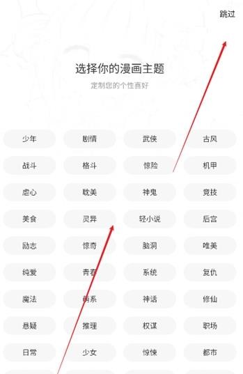 3. 挑选自己爱看的漫画类型,若不想选,也能点击跳过。