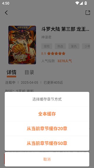 3. 点击已选中的漫画,进入详情页,在此页面能够查看漫画的简介、章节列表以及作者信息等内容。