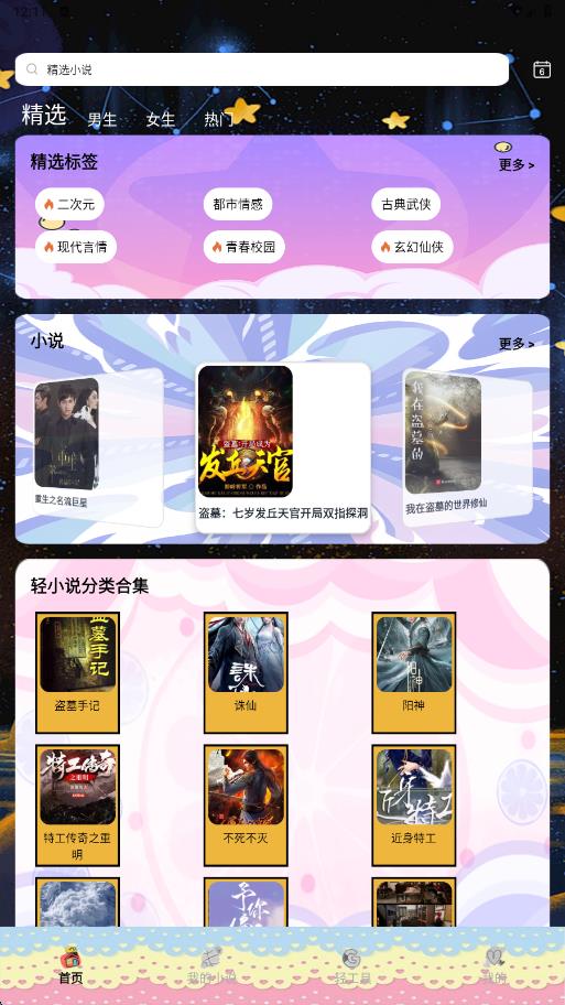 1. 在首页可查看分类,也能借助精选标签,快速查找小说。