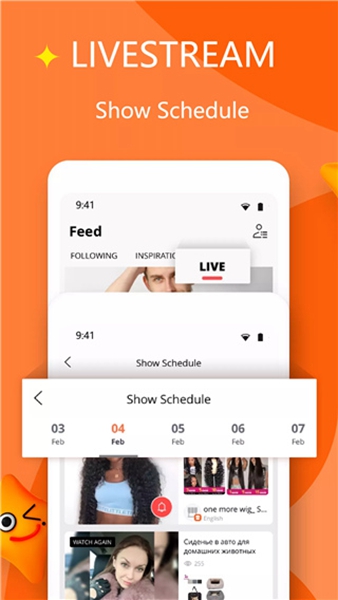 2、点开feed,由众多商品推荐,在此输入商品名称可以搜索该商品的使用体验和直播。