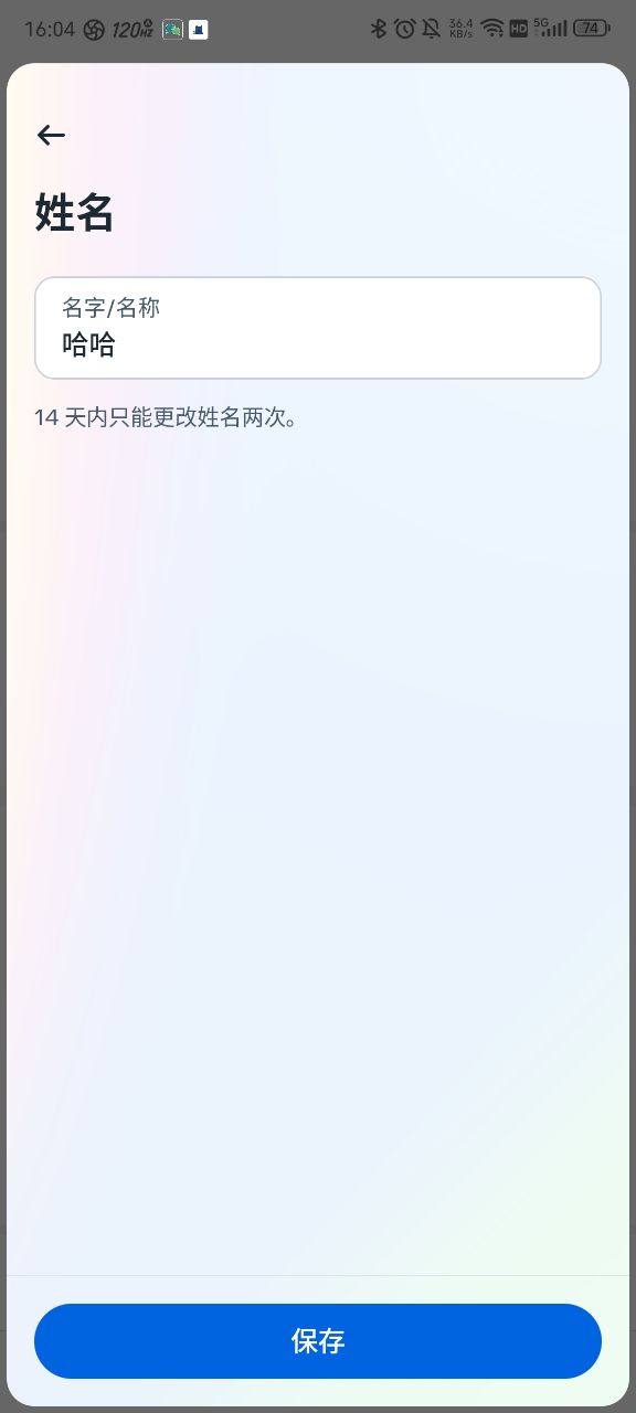 注意:14天内仅能更改姓名两次。