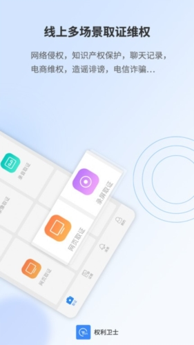 权利卫士是一款由联合信任开发的电子取证应用工具,它支持拍照、录像、录音、网页取证、录屏等丰富多样的取证方式,涵盖现场取证以及互联网线上取证两大功能范畴,能够充分满足用户在各类场景下的取证维权需求。该应用操作极为简单便捷,且具备安全性与有效性,不仅获得了行政认可,还能被司法采信,以可靠的服务切实保障用户权益。权利卫士通过上述取证功能,可即时生成可信的时间戳来固化电子证据,从而有力确保证据的真实性与不可篡改性。