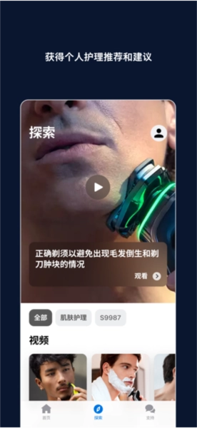 飞利浦男士理容,作为专为现代绅士精心定制的全方位护理得力助手,把飞利浦男士理容与智能剃须刀或者修剪器完美融合,使得每一回剃须都能转变为提升生活品质的美妙体验。无论是实时的剃须指导,还是个性化的护理建议,乃至肌肤问题的解决办法以及产品的清洁保养窍门,统统尽在掌控之中。从此告别剃须时的种种烦恼,尽情享受顺滑舒适的理容旅程。