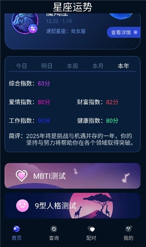 3、应用内包含多种运势相关内容,诸如今日运势、明日运势,以及本月和本年运势等。