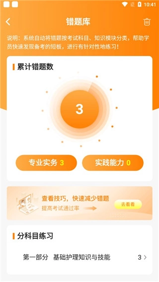 3、错题库:依据考试科目与知识模块自动分类,助力你迅速察觉备考的薄弱环节,快速强化薄弱知识点。
