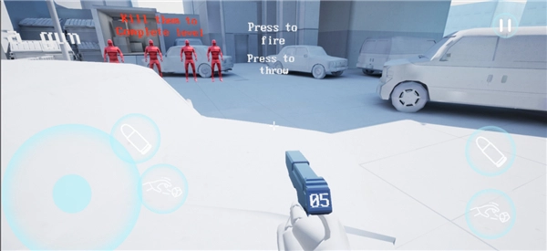燥热游戏手机版本堪称一款趣味性十足的第一人称射击游戏。它的画风别具一格,主界面运用代码风格设计,角色以 3D 形态展现。玩家操控的角色以及可使用的道具皆为黑色,而敌人均呈红色。游戏背景多为浅蓝色与白色,与主界面风格相互映衬,为玩家营造出极为简约的视觉感受。