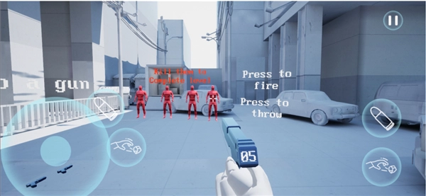 5、当手中持有枪支时,功能键会转变为射击键与投掷键。