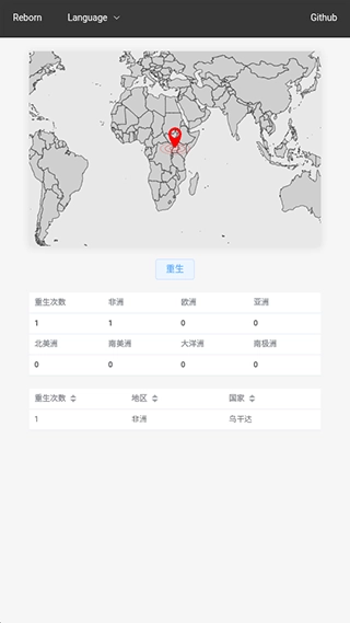 2. 点击“重生”按钮,你将会重生至全球某一大陆的某个国家。