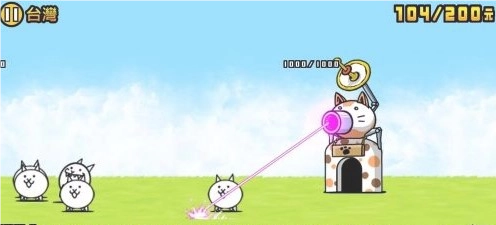 3、猫咪炮启动,按下下方按钮,就能从城堡发射雷射进行攻击,其射程涵盖城堡所在位置。将敌人引诱至射程范围内,便可一举歼灭。