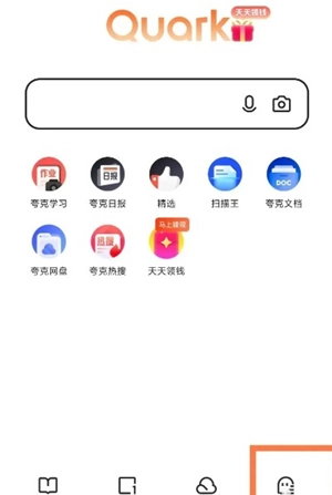 1. 首先,在手机上开启夸克浏览器这款软件,接着点击下方的菜单选项。