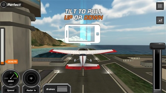 3、该游戏通过重力感应来操控飞机,将设备上下翻转,可控制飞机攀升或降落,左右倾斜则能控制飞机转向。