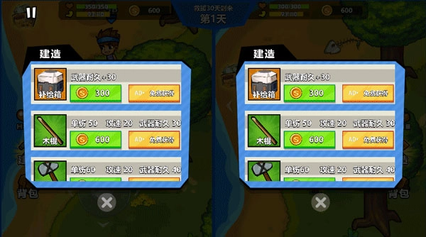 来到“建造”界面,挑选武器、防具、工具之类进行合成。在初期,推荐打造木棍、斧头等基础武器,以此用于防御。