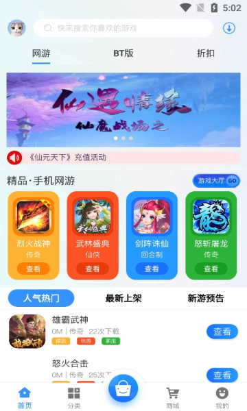 3、能够在首页浏览最新推荐的游戏,也可以搜索自己心仪的游戏。