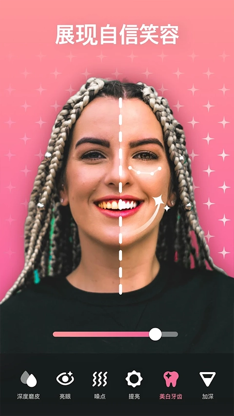3、只需一次点击,就能达到自然的效果,然后生成一张完美的图片。它的操作简单,功能强大,如果你想要 P出漂亮的照片,这款应用一定会非常适合你。
