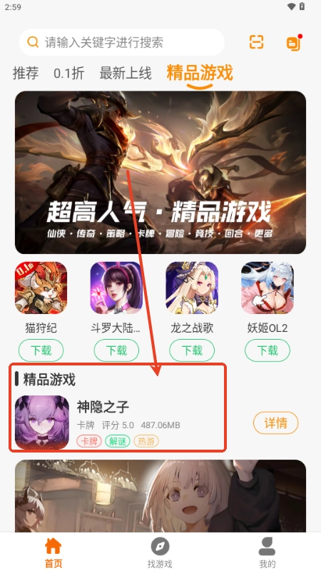 1. 在主页点击,挑选自己感兴趣的游戏。