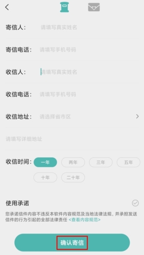 4、填写相关信息,点击确认寄信按钮就可以了。