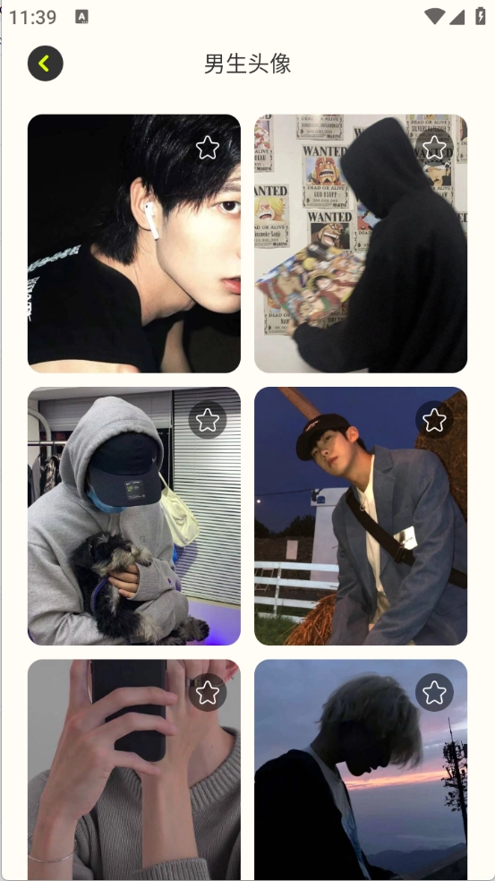 4、“头像”页面,包含了男生女生头像,点击喜欢的头像也可以进行收藏、以及保存等。