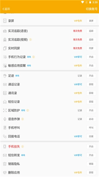 对手机拨打电话、发送短信以及打开应用的行为进行记录。详细的记录情况能够在网页端进行查看。