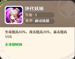 二技能:绝代妖姬(此为被动技能)