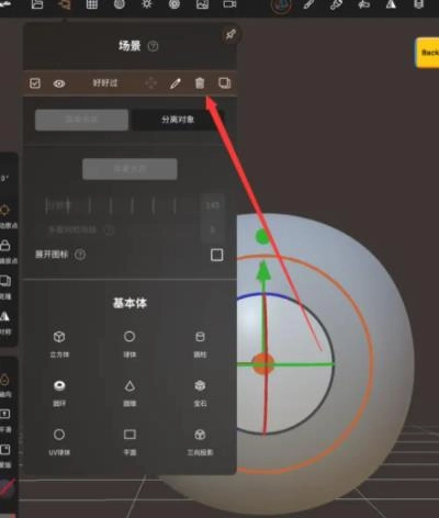 如箭头所指,在“场景”下方的选框中,找到形似垃圾桶的标志并点击。