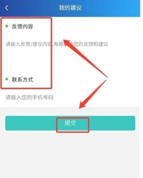 3、来到我的建议页面,填入反馈内容与联系方式,点击“提交”。
