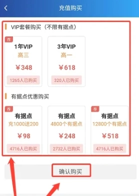 3、来到充值购买页面,挑选VIP套餐,点击【确认购买】这一选项便可。