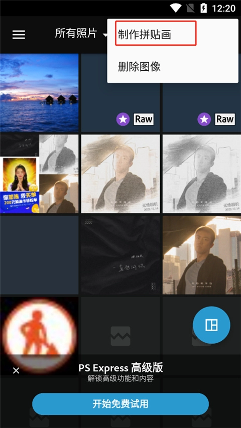 1. 打开软件,进入首页后,点击页面右侧的三个点,然后选择点击“制作拼接图”选项。