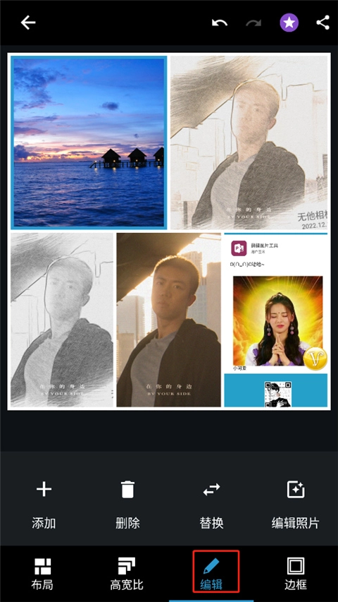 4、接下来点击编辑选项,如此你便能对自己拼图里的每一张图片进行编辑操作,完成编辑后,选择保存就可以了。