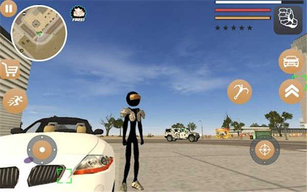 2、当角色身旁出现车辆时,屏幕左侧会显示一个汽车头形状的按钮,点击该按钮,角色就能抢夺车辆。若要操纵车辆,屏幕右下角设有两个踏板,左边的是刹车按钮,右边的是油门。屏幕左下角还有类似方向盘的部件,用于控制方向。务必熟练掌握对汽车的操纵,因为这是快速获取金币的绝佳方式。