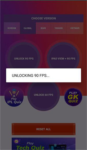 1. 开启软件,选中全局模式GLOBAL,接着点击解锁90帧模式。
