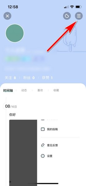 1、进入我的主页频道,点开右上角三横线的窗口。