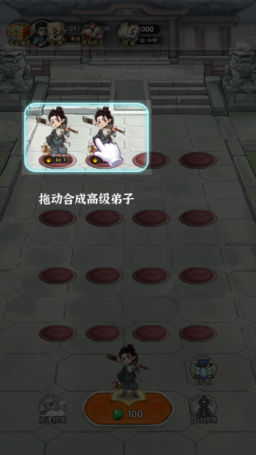 2. 合成规则是选取两名等级相同的弟子进行融合,从而生成等级更高一级的弟子。